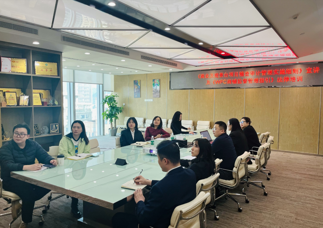 集團(tuán)風(fēng)控開展《商業(yè)及觀景臺項(xiàng)目稽查審計管理實(shí)施細(xì)則》制度宣講及《WFC商鋪監(jiān)督管理指引》法律培訓(xùn)