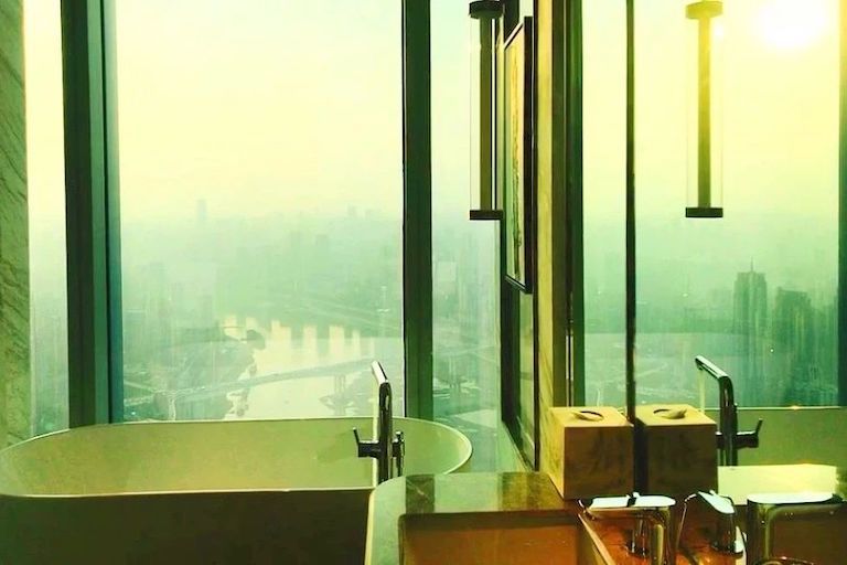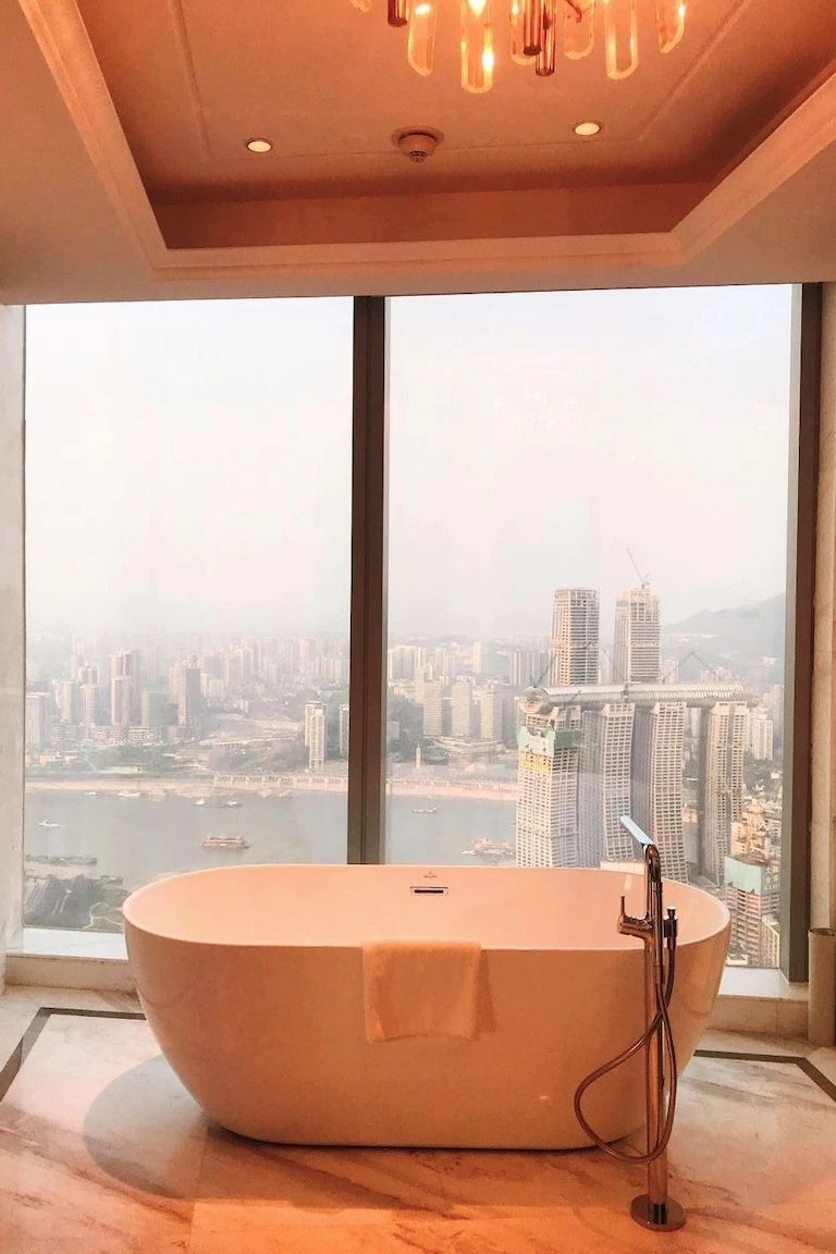 兩江交匯處也云集了一圈好酒店,眾設計師們也特別有心,把人們最享受的餐廳、睡床、浴缸甚乃至洗手間設計成了江景,甚至也紛紛把酒店大堂搬到了空中,讓人們從抵達辦理入住開始便可隨時隨地俯瞰兩江四岸無限風光。
