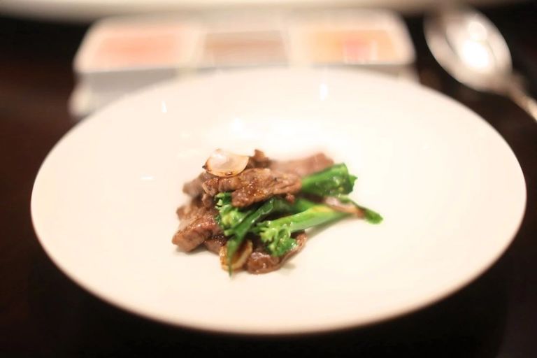 但其實最家常的菜,才最考驗師傅的手藝,就像一盤簡單的咕咾肉和芥藍炒肉,前者要皮脆肉黃,后者譚師傅用的是澳洲和牛,和牛要提前腌一下,味道才出來,加芥藍炒,就有芥藍的香味。