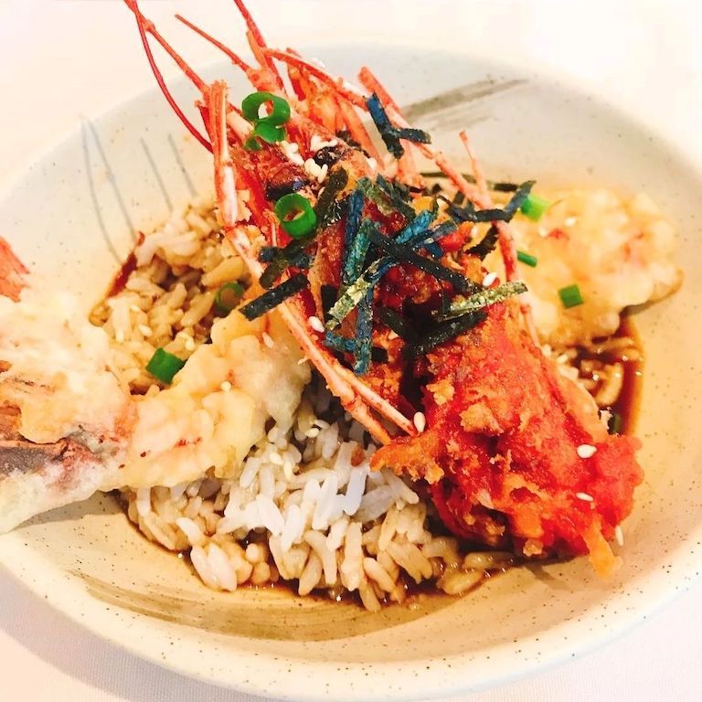 鬼蝦天婦羅配肉骨茶泡飯的創(chuàng)意很有趣,先用天婦羅的方式來炸日本鬼蝦,炸完之后用肉骨茶去做泡飯,再配上天婦羅的貴蝦,東南亞日本雙吃。