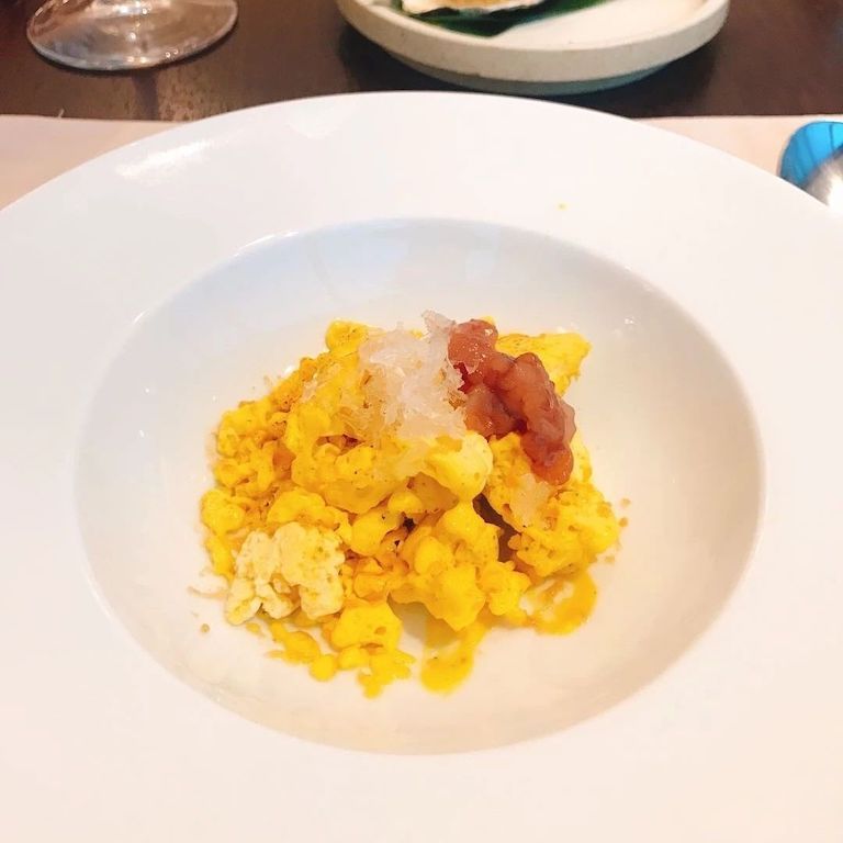 紳餐廳有一道菜幾乎是客人必點的,看上去特別像炒蛋,其實是一道甜品,叫“雪蛤燕窩楊枝甘露”。
